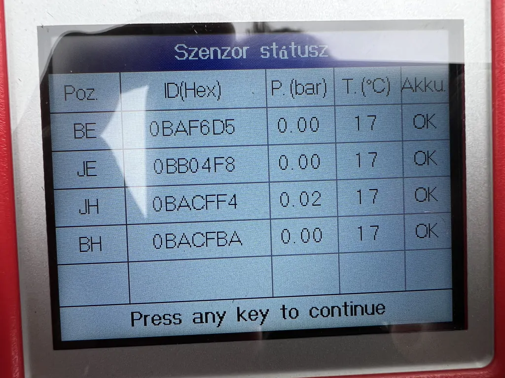 Tpms szenzorral, mind a négy bemérve, tökéletes működés.