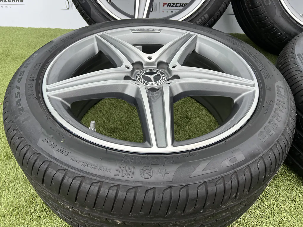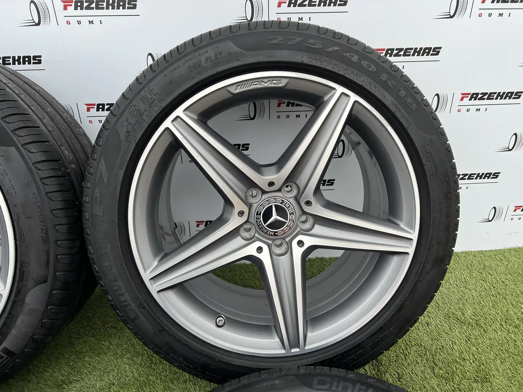 Eladó a képen látható 5x112 18coll Mercedes AMG gyári alufelni 275/40 R18 245/45 R18 Pirelli nyári gumikkal.