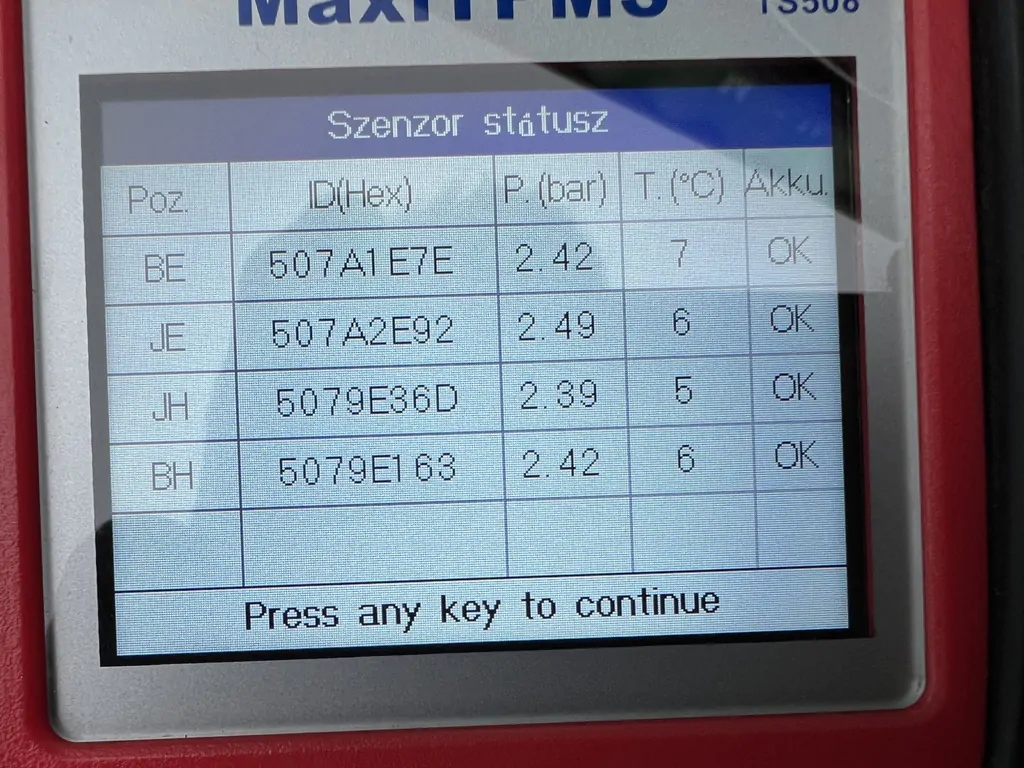 Tpms szenzorral, mind a négy bemérve, tökéletes működés.