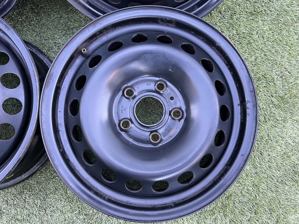 Eladó a képen látható 5x112 15coll Volkswagen gyári lemezfelni garnitúra