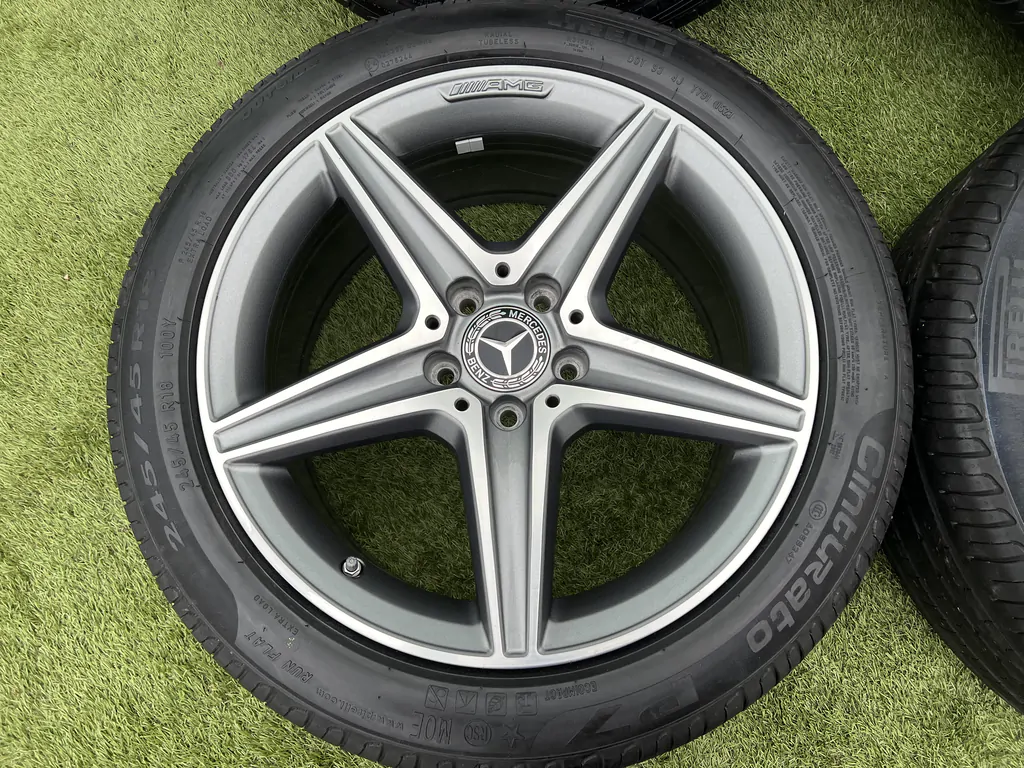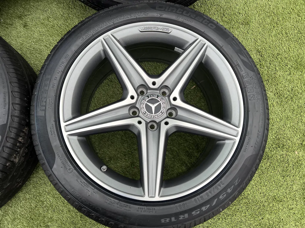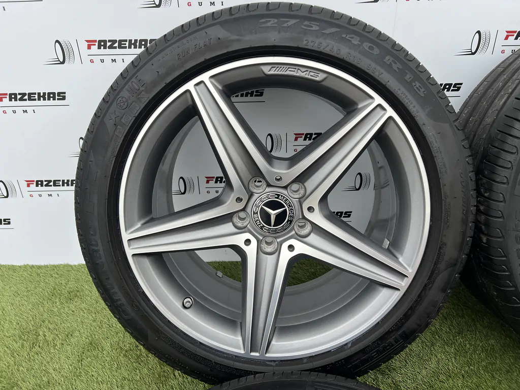 Eladó a képen látható 5x112 18coll Mercedes AMG gyári alufelni 275/40 R18 245/45 R18 Pirelli nyári gumikkal.